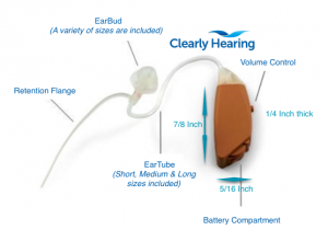 The SmartAid Digital Premium is a very small behind the ear design. They come in a beige or charcoal color, and they are sold with a variety of sizes of ear tubes so you can get the right fit. It is a fairly standard design with a volume control and a compartment for the battery. The size dimensions are 7/8 of an inch in length, by 1/4 size in thickness and 5/16 of an inch in width.